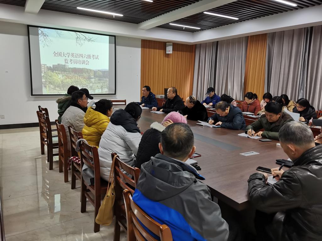 12月8日下午,太阳网集团tcy8722在综合楼715会议室召开全国大学生英语四六级考试教师培训会,全体教师参加了会议。