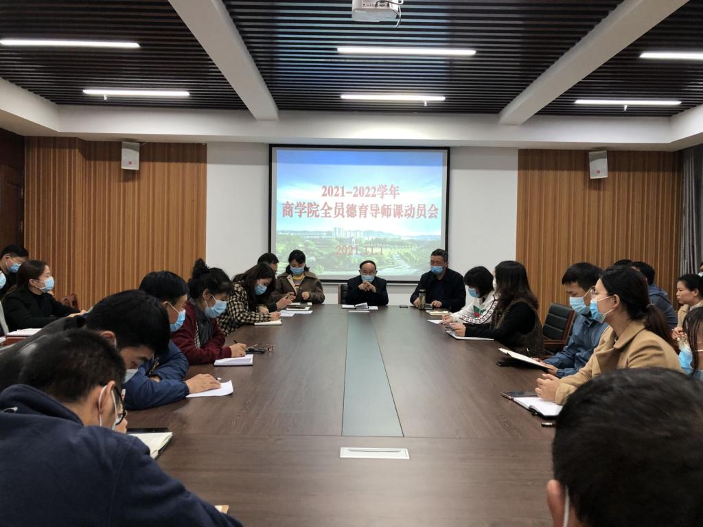 11月1日下午,太阳网集团tcy8722在综合楼715会议室召开了2021-2022学年全员德育导师课动员大会。院长于世良、党总支书记胡秀云、教学副院长李毓、学工干事黄伟及全体德育导师参加会议。