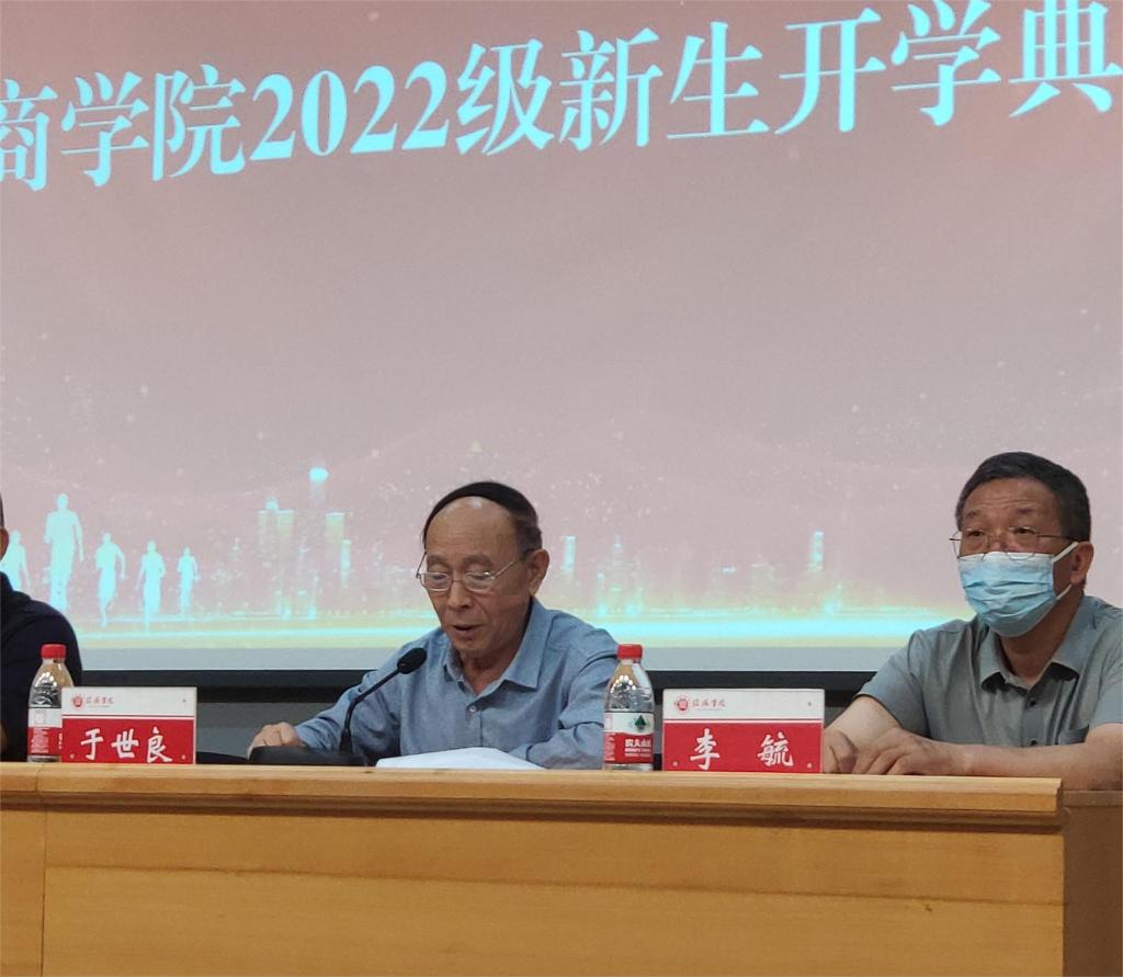 9月23日下午,太阳网集团tcy8722以线上线下相结合的方式举行了2022级新生开学典礼,主会场设在图书馆101会议室,分会场在综合楼各个教室。副校长王强出席开学典礼,院长于世良,党总支书记胡秀云,副院长李毓、吴新静,教学秘书盛大俊、行政秘书高昌慧、学工负责人花端阳、特聘教授代表、各教研室主任、2022级新生班级辅导员和2022级新生代表参加典礼。胡秀云主持了开学典礼。