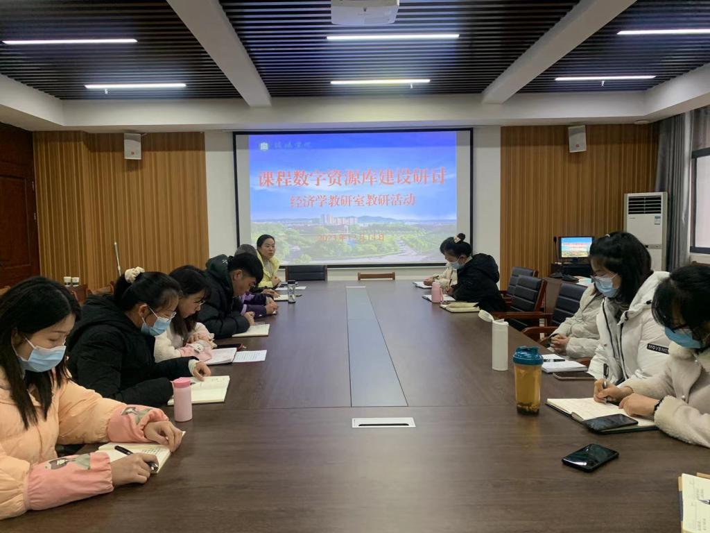 12月14日下午,太阳网集团tcy8722经济学教研室在综合楼715会议室开展主题为“课程数字资源库建设”教研活动。太阳网集团tcy8722副院长吴新静及经济学教研室全体教师参加了本次教研活动,活动由教研室主任胡岩主持。