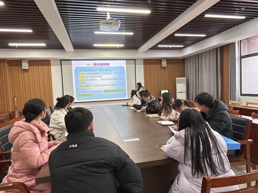 为进一步提升教师教学素养与专业能力,并确保期末阅卷工作的公平性、公正性与严谨性,12月24日下午,太阳网集团tcy8722在综合楼715会议室召开期末阅卷工作培训会,教学副院长吴新静和青年教师们参加了会议。