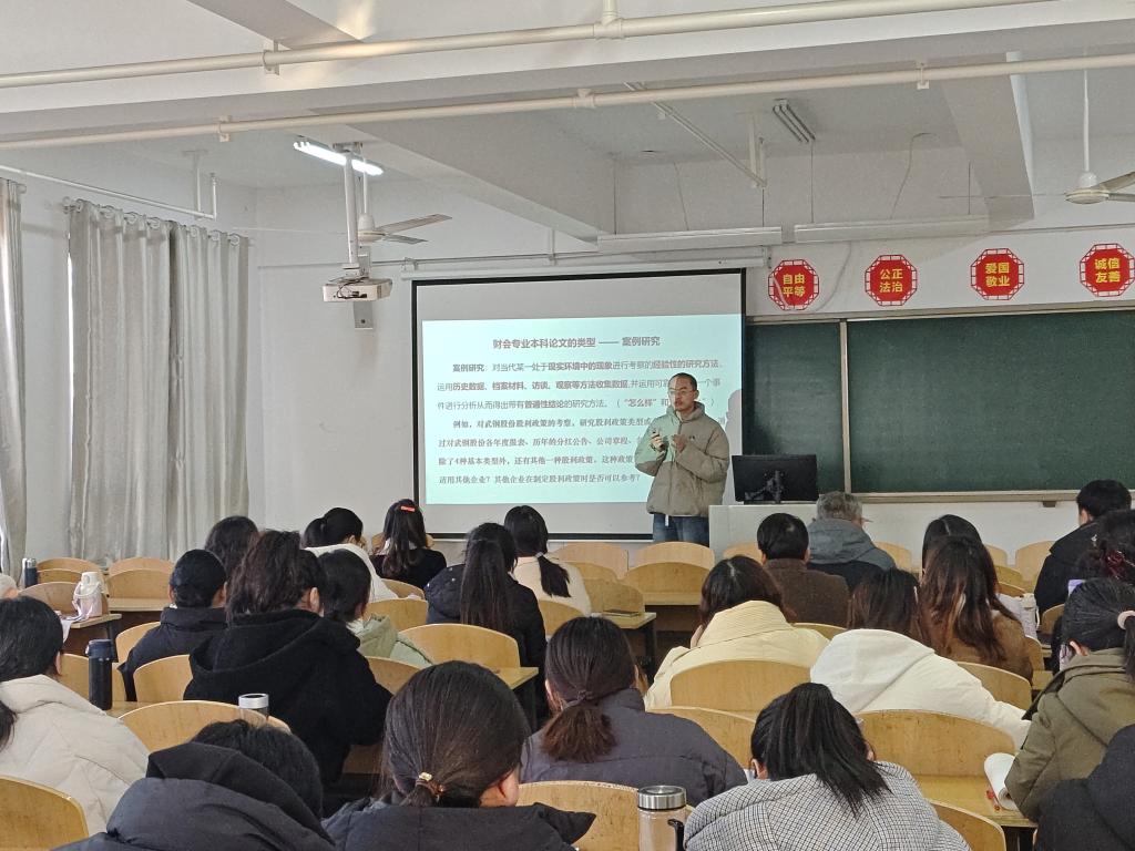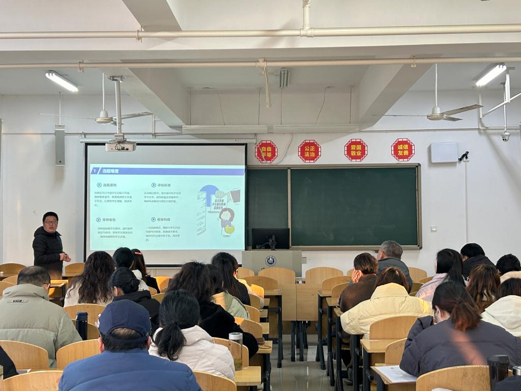 会上,关书豪老师分享了自身论文写作指导的宝贵经验。他从论文选题的挖掘与筛选、文献综述的撰写要点、研究方法的合理运用到论文正文的逻辑架构搭建和内容充实等方面,都进行了细致入微的阐述。关老师强调,引导学生关注现实问题、结合专业知识进行深入探究是激发学生写作兴趣和提升论文质量的关键。同时,他还展示了一些优秀的论文案例,为教师们提供了直观的参考,使大家对高质量的毕业论文有了更为清晰的认识和把握。