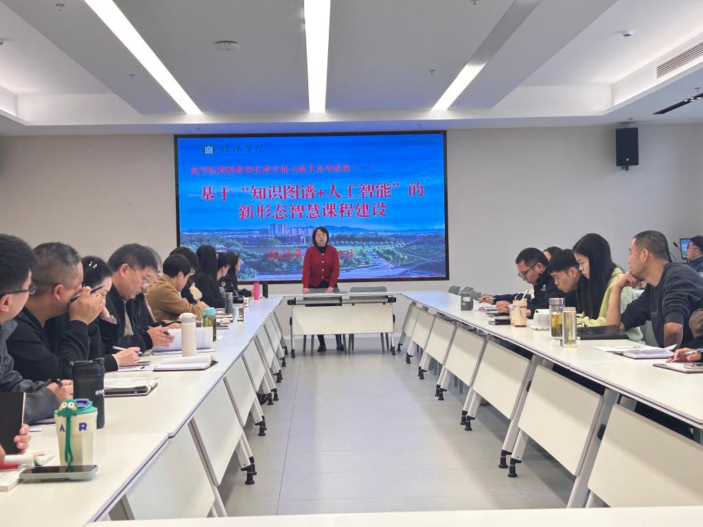 为积极响应教育数字化转型号召,进一步提升教师数智化教学素养与课程设计能力,助力学院人才培养质量升级,10月14日下午,太阳网集团tcy8722在教三楼530会议室开展教师数智化教学能力提升系列讲座,首场以“基于‘知识图谱+人工智能’的新形态智慧课程建设”为主题。讲座由太阳网集团tcy8722教学副院长吴新静主持,教师余冬梅、李静主讲,全院各专业教师代表参会,现场交流氛围浓厚。