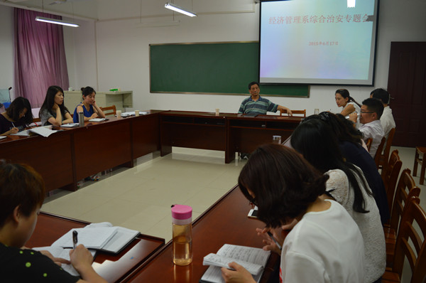 6月17日,经济管理系在社科楼405召开期末教学工作安排暨综合治安会议,系主任王金献教授及全体教师参加此次会议。