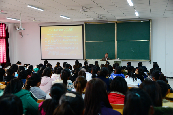王征兵教授从不在意资金的发现、规律探索、心理学根源、影响因素、行为主体、文化对不在意资金规律的影响等方面对不在意资金理论进行了深入讲解。王教授幽默风趣的演讲风格,赢得在场师生的阵阵掌声。
