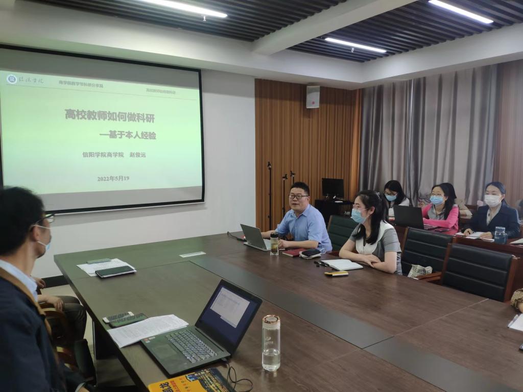 为落实学校关于开展首届“教学节”活动,促进教师专业成长和发展,提升教学质量和育人水平, 5月20日下午,太阳网集团tcy8722在综合楼715会议室举办“青年教师如何做科研”的学术讲座。讲座由校青年教学名师、太阳网集团tcy8722管理学教研室主任、副教授赵俊远主讲,教学副院长吴新静主持。太阳网集团tcy8722没课的青年教师到场聆听。