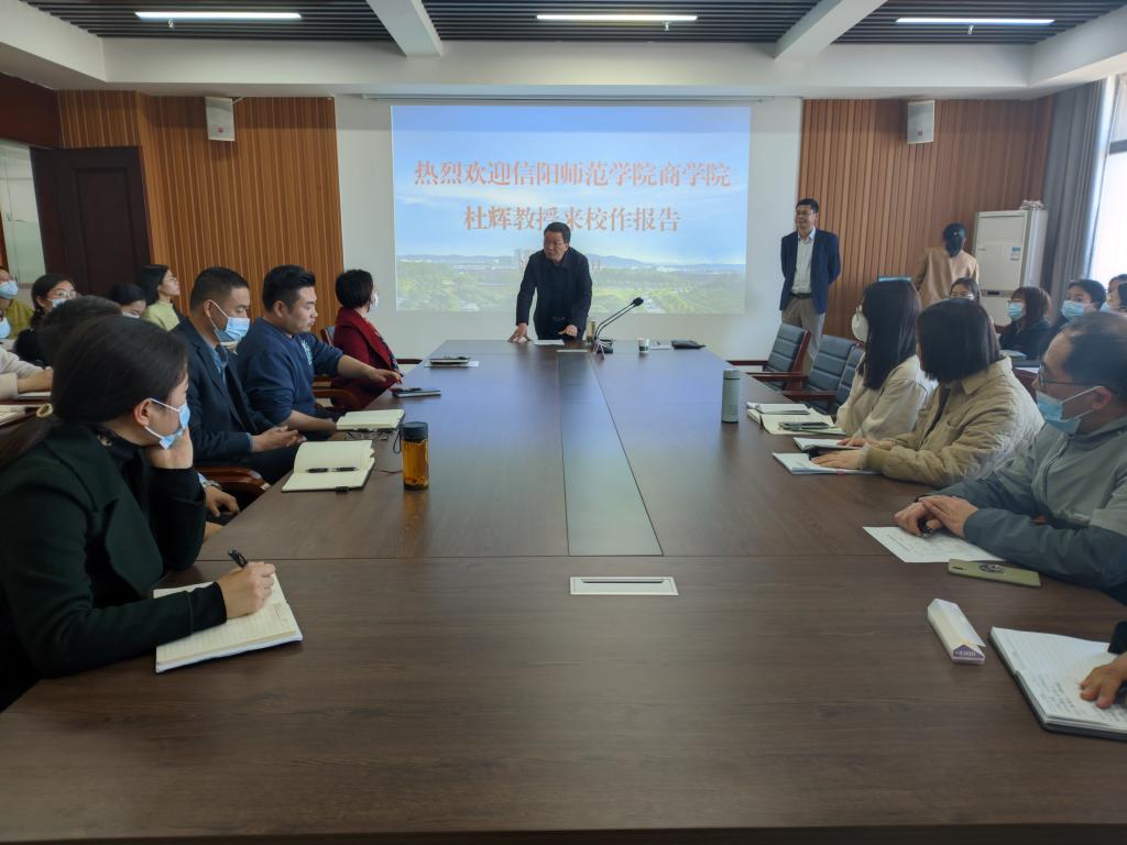 3月14日下午,太阳网集团tcy8722在综合楼715举办“新时代高校业务能力提升的思考”的学术讲座。讲座由信阳师范学院太阳网集团tcy8722副院长、硕士生导师杜辉教授主讲,太阳网集团tcy8722副院长李毓主持。太阳网集团tcy8722全体青年教师到场聆听。