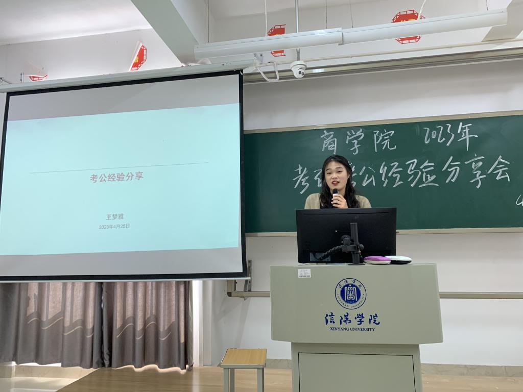 随后,今年成功考取选调生的王梦雅同学谈到,要及早制定考公计划,选定考公行业,同时,要坚持每天练习真题,从真题练习中补足自身短板,提高答做题的高效性和正确性。今年成功考取硕士研究生的王乐乐同学结合自己考研经历,希望学弟学妹们早做人生规划,明确考研目标,早日实现人生理想。王晶同学结合自身经历,从如何明确考研目标,到制定考研计划,向大家分享了如何结合自身优势,发挥长处,提高考研效率的途径,讲述了考研之路。王露雨同学对考研的学弟学妹们寄语,“我们要怀着对考取研究生继续深造的憧憬,激发自我考研动力,考研之路虽然艰苦,但我们要时刻保持信心;适当定位,积极争取,量力而行,报考适合自己的学校。