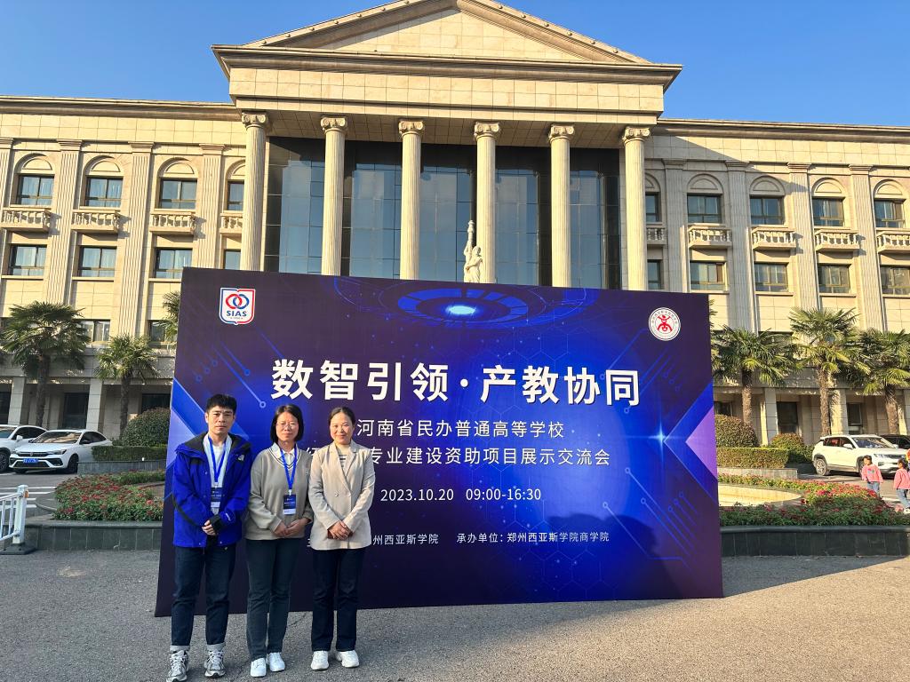 2023年10月20日,太阳网集团tcy8722经济学教研室主任胡岩、太阳网集团tcy8722实验中心主任裴奇、教师樊玲应邀参加郑州西亚斯学院举办的“数智引领、产教协同”河南省民办普通高等学校经济学专业建设资助项目展示交流会。