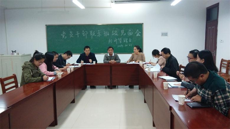 10月21日,经济管理系党员干部联系班级见面会在SK-405会议室召开。系主任王金献、财务部部长张永志、财务部党员同志、系秘书及系辅导员参与此次会议。会议由系党总支副书记李肖利主持。