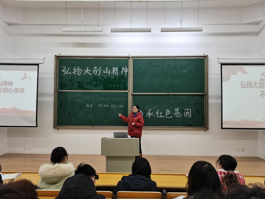 胡秀云书记从对“认识红色大别山”“习近平总书记信阳之行”“作为信阳高校大学生如何传承好红色文化”三个方面展开讲述。给同学们讲述了大别山党的故事、革命的故事、根据地的故事、英雄和烈士的故事,让同学们进一步了解了大别山在革命战争中的重要地位,以及大别山辉煌的革命史。最后胡秀云希望本期入党积极分子认真学习习近平总书记来河南考察的讲话精神,全面理解、准确把握大别山精神的深刻内涵,扛牢职责使命,立足自身实际,勤奋刻苦学习,积极弘扬大别山精神,传承红色基因。
