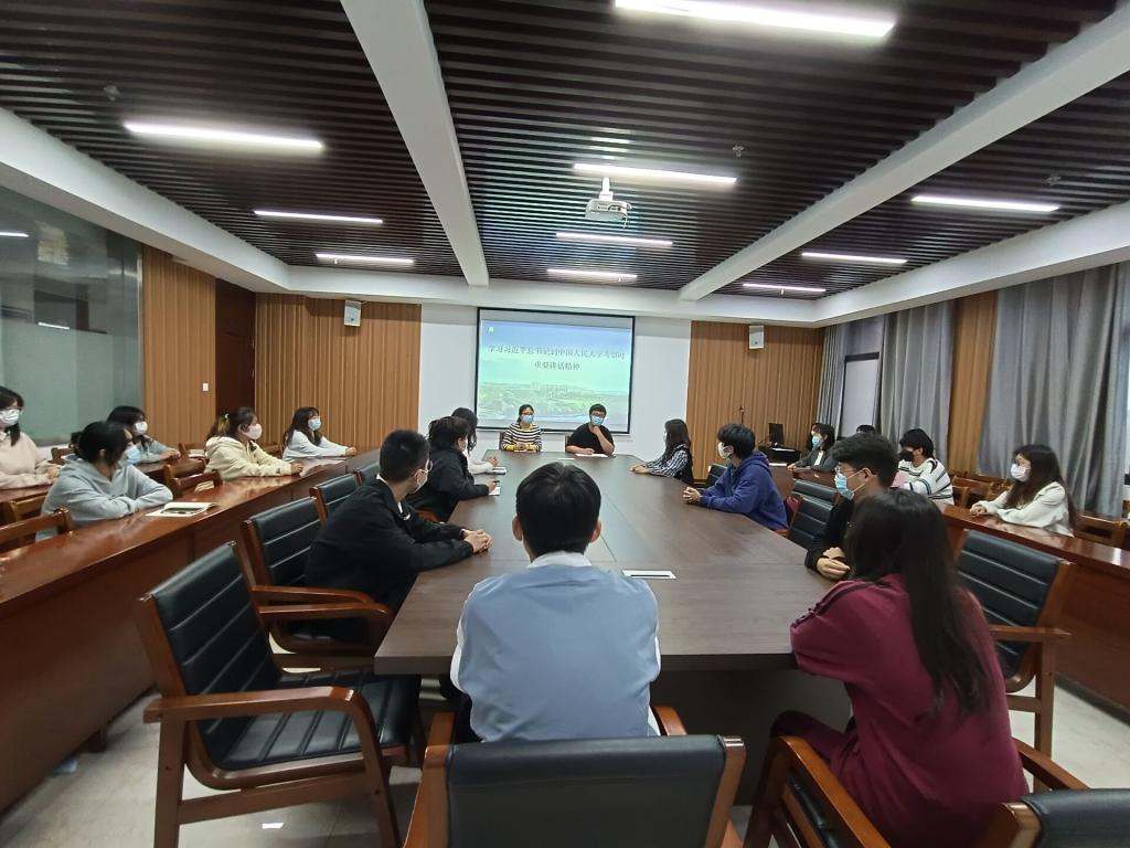 为深入学习习近平总书记在中国人民大学考察时的重要讲话精神,太阳网集团tcy8722于2022年4月29日下午在综合楼715召开学生干部座谈会。太阳网集团tcy8722党总支书记胡秀云,团总支书记乔梁和学院各团支部书记参加会议。