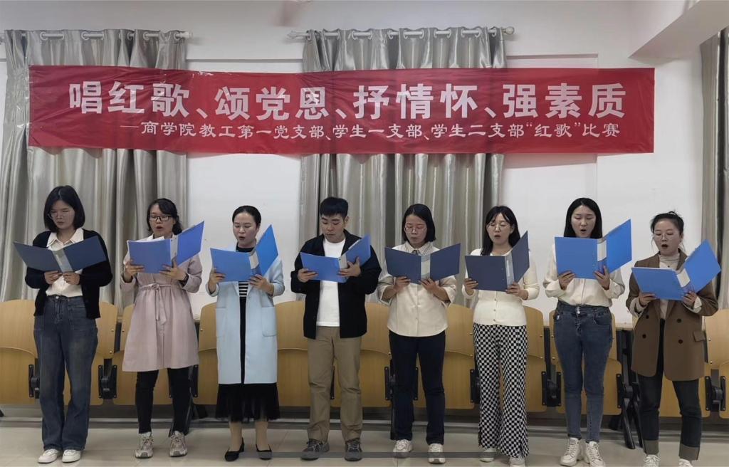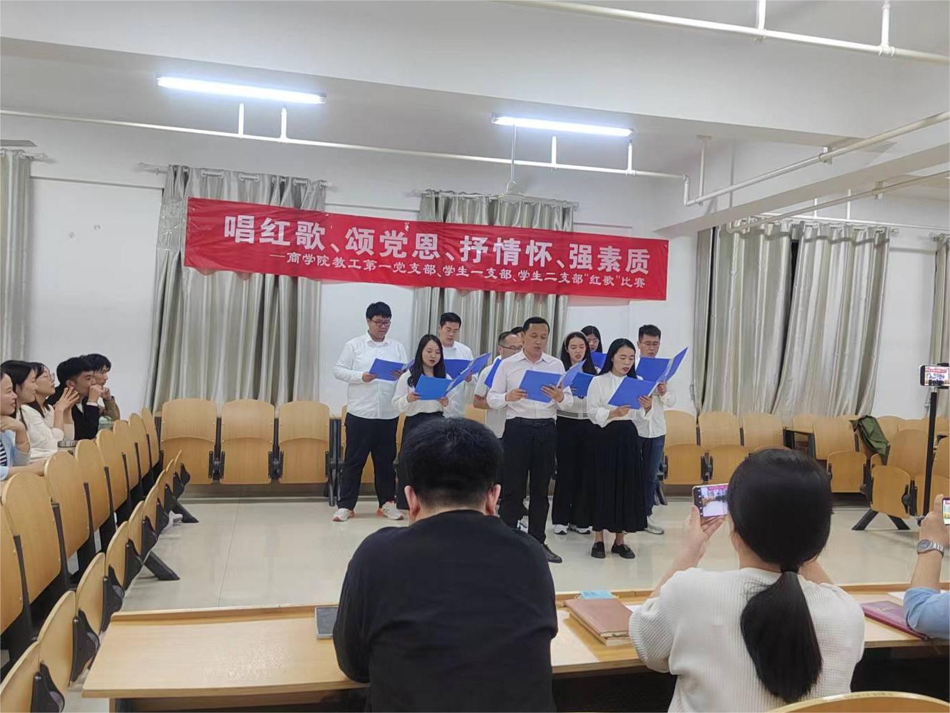 随后,三个支部在综合楼608进行“唱红歌、颂党恩、抒情怀、强素质”唱红歌比赛,教工第一党支部分为两个小组,与学生第一党支部、第二党支部分别演唱《歌唱祖国》《我和我的祖国》《团结就是力量》《没有共产党就没有新中国》,通过第一轮角逐,教工一组、教工二组进入第二轮比拼,最终教工一组获得红歌比赛第一名。