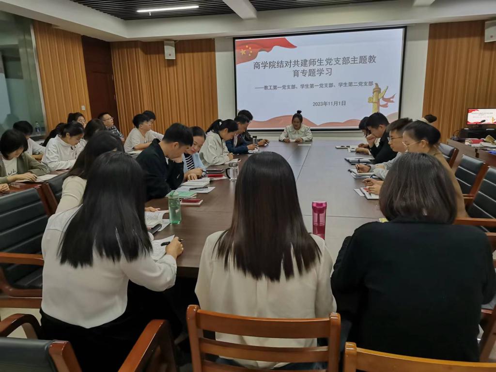 首先,太阳网集团tcy8722教工第一党支部与学生第一党支部、学生第二党支部在综合楼715会议室进行了太阳网集团tcy8722结对共建师生党支部主题教育专题学习,教工第一党支部书记吴新静首先就师生联学共建的重要性和必要性发表讲话,教工党员代表裴奇、学生代表于笑迎及周依琳分别上台领学了习近平新时代中国特色社会主义思想和《中国共产党章程》。通过三位同志的领学,党员同志们全面理解和把握了习近平新时代中国特色社会主义思想和党的创新理论,增强了对习近平新时代中国特色社会主义思想的政治认同、思想认同、理论认同和情感认同。