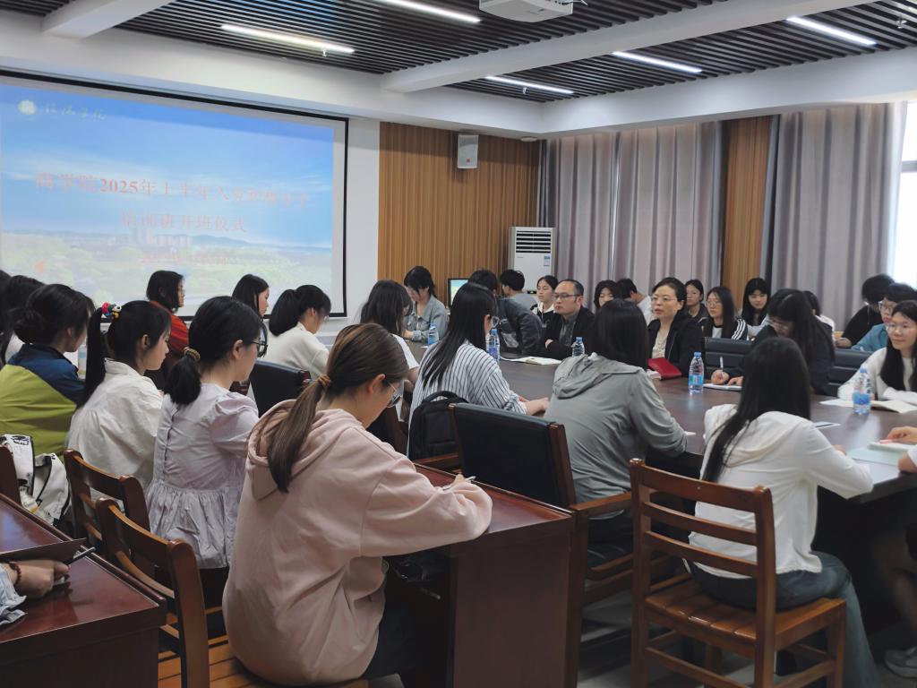 党总支书记胡秀云同志为本次入党积极分子培训班作开班辅导报告,并向全体学员提出三点深情厚望:一要以高度的责任感珍惜此次培训机会,始终保持勤学善思的态度,深入钻研党的理论知识,力求学有所思、学有所获、学以致用;二要始终坚守初心,持续端正入党动机,把对党的忠诚与信仰融入日常学习生活,不断提升党性修养,做一名有理想、有道德、有文化、有纪律的共产主义接班人;三要厚植家国情怀,坚定理想信念,将个人理想与国家发展大局紧密相连,积极投身科技创新、志愿服务等实践活动,在实干中锤炼过硬本领,争取早日成为一名光荣的共产党员,为实现中华民族伟大复兴的中国梦贡献自己的青春力量。