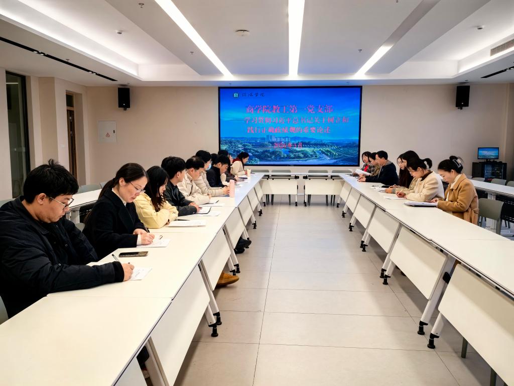 专题学习环节,吴新静领学《习近平关于树立和践行正确政绩观论述摘编》第四章“坚持高质量发展要成为领导干部政绩观的重要内容”。支部副书记余冬梅、经济学专业负责人胡岩、教师党员姚飞羽分别结合教学科研、专业建设、人才培养等工作实际交流学习心得,进一步凝聚起树立和践行正确政绩观的思想共识。