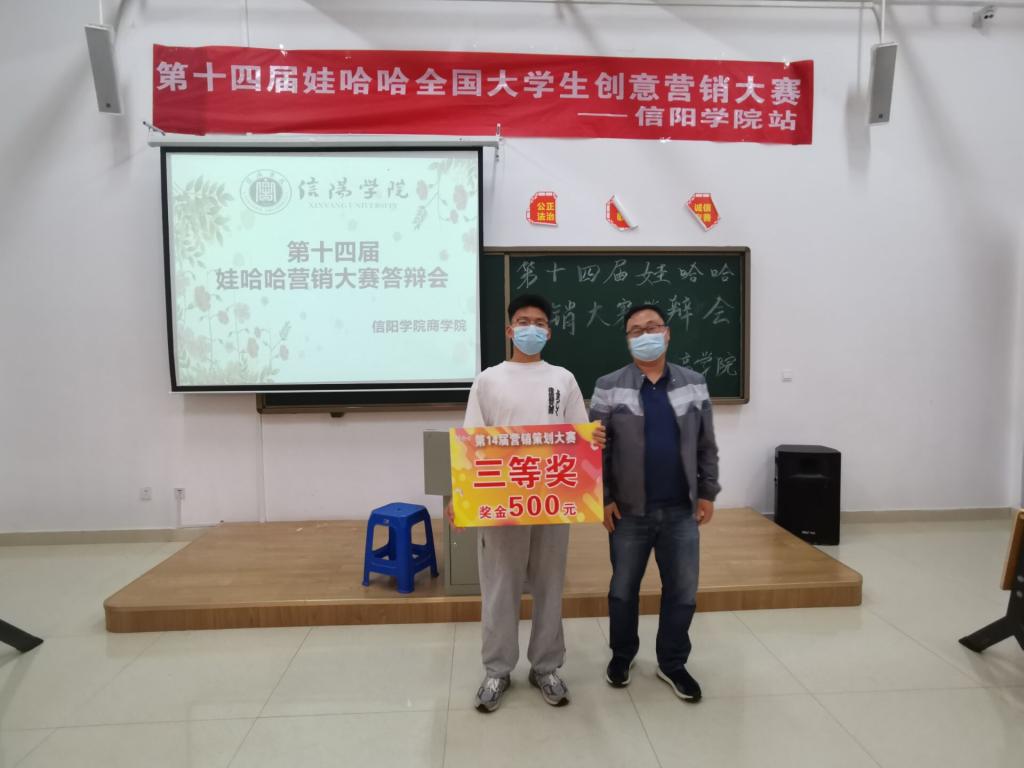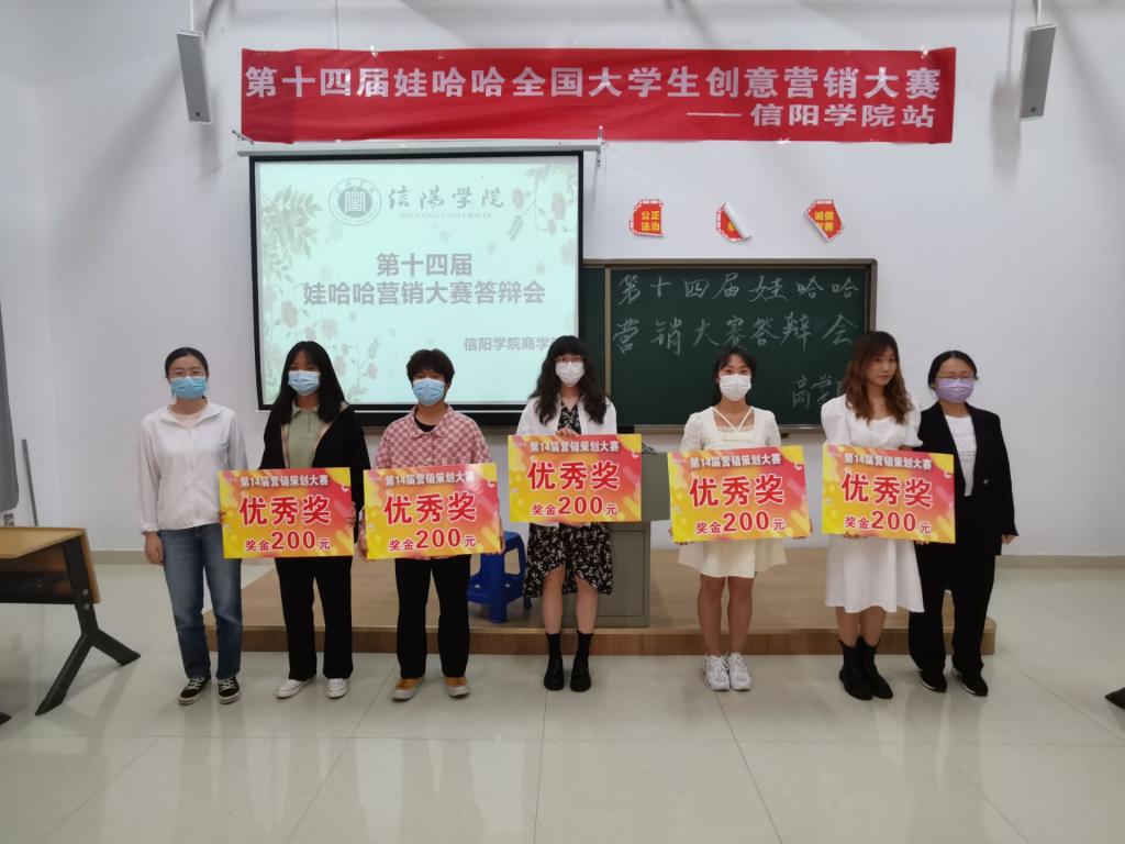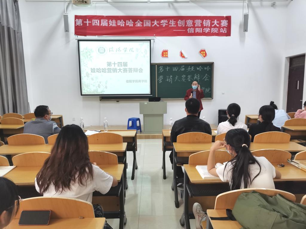 第十四届娃哈哈全国大学生创意营销大赛太阳网集团8722站总决赛于5月24日,在综合楼205教室成功举行。太阳网集团tcy8722院长于世良、娃哈哈集团信阳分公司总经理李翔、学工负责人黄伟、辅导员张莹与王爱霞出席此次活动并担任大赛评委。