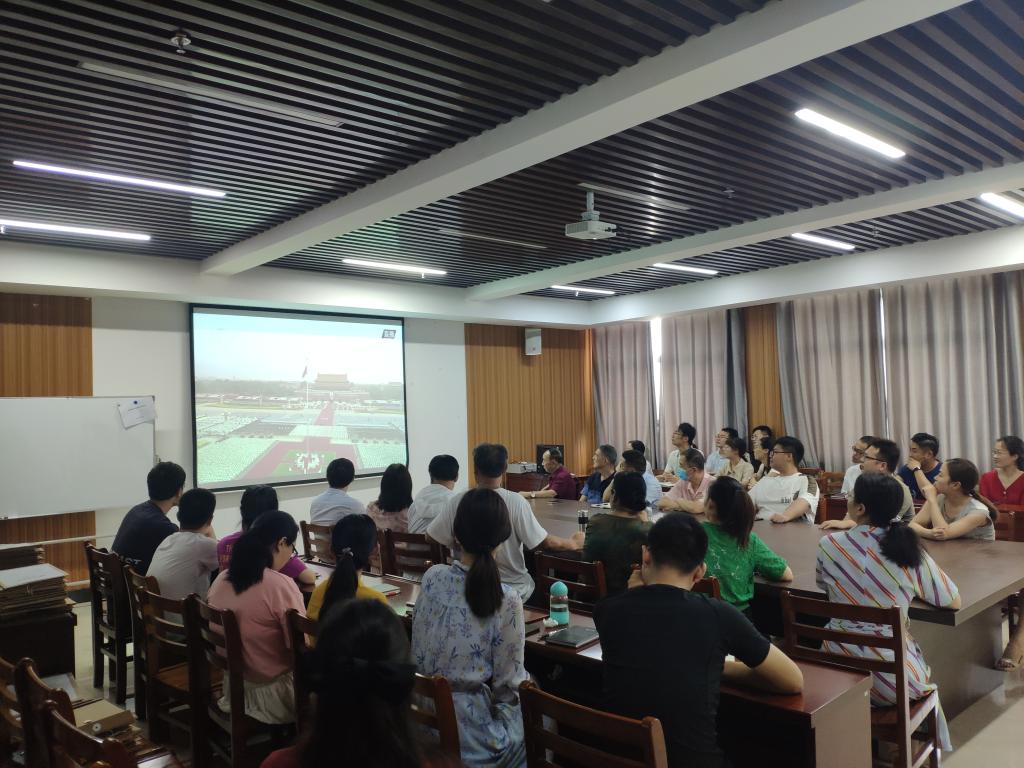 太阳网集团tcy8722院长于世良、副院长、党总支书记胡秀云,全体教师在综合楼715会议室通过网络直播收看大会盛况,组织学生通过电视、广播和手机客户端等方式认真聆听总书记重要讲话,共庆建党一百周年,为党送上最诚挚的祝福。