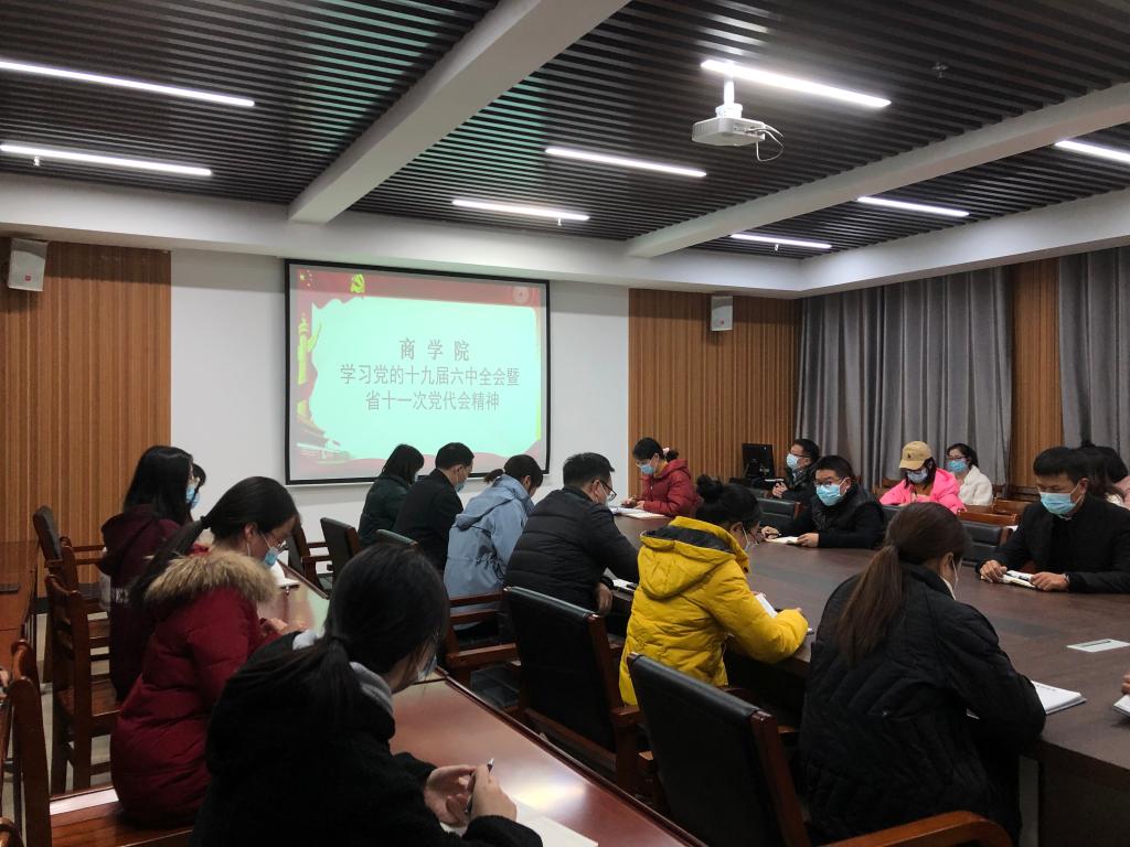 11月23日下午,太阳网集团tcy8722在综合楼715会议室举行党的十九届六中全会暨省十一次党代会精神学习会。学院全体教师党员参加了本次学习,会议由党总支书记胡秀云主持。