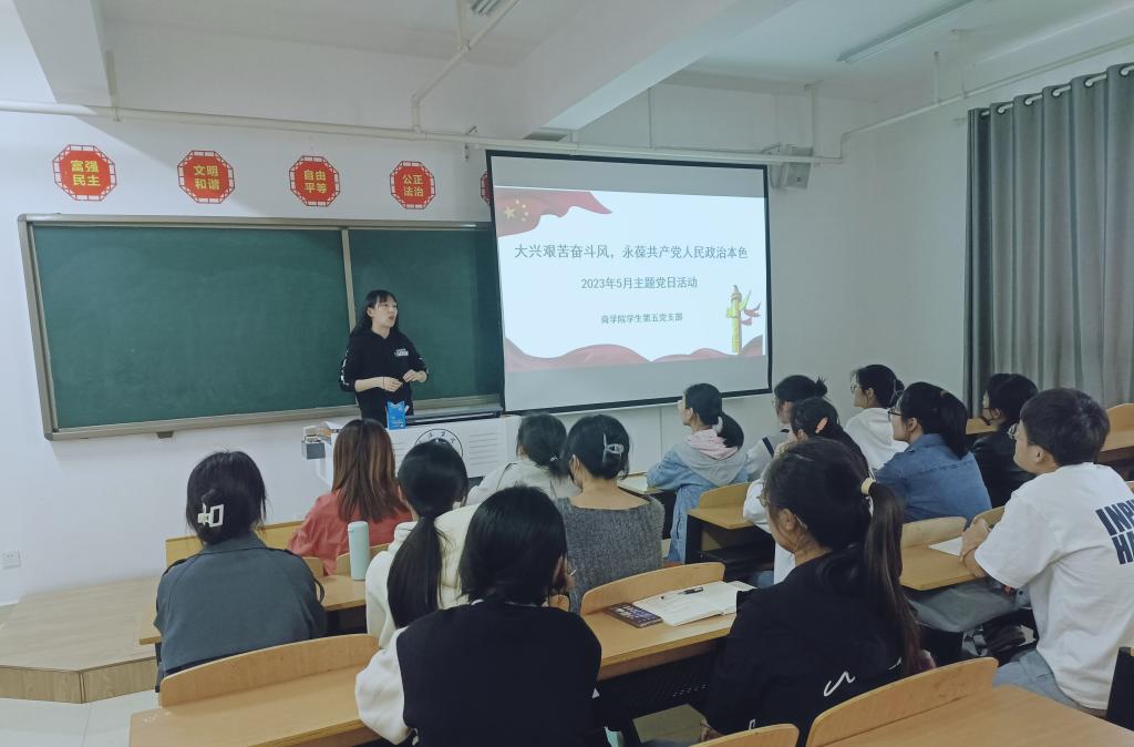 学生第五党支部书记房蕾开展了“大兴艰苦奋斗风,永葆共产党人民政治本色”的主题党日活动,组织全体党员集中学习了艰苦奋斗作风的重要意义。