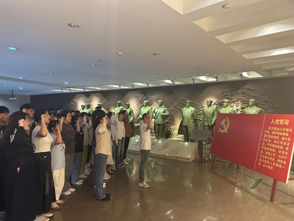 首先,太阳网集团tcy8722党总支书记胡秀云带领师生于5月25日组织师生党员赴鄂豫皖革命纪念馆开展了“重温入党誓词”主题党日活动。来到纪念馆,在讲解员的带领下党员们依次参观了“大别风雷星火燎原”“红军摇篮将军故乡”“红色苏区共铸辉煌”“红色土地艰苦卓绝”“江淮抗战中流砥柱”“中原突围铁流千里”“千里跃进伟大壮举”七个主展厅。展厅里一个个简陋的军衣、草鞋,一件件布满岁月痕迹的武器、一幅幅生动的战斗图片,都在诉说着革命先烈波澜壮阔的光辉历史,让党员干部们身临其境的感受到革命先烈奋不顾身、舍身忘死的革命激情。党员们仔细观看了文字、图片、实物等珍贵历史资料,认真聆听讲解员讲解,追忆峥嵘岁月,缅怀革命先烈们的丰功伟绩,接受“大别山精神”的洗礼。