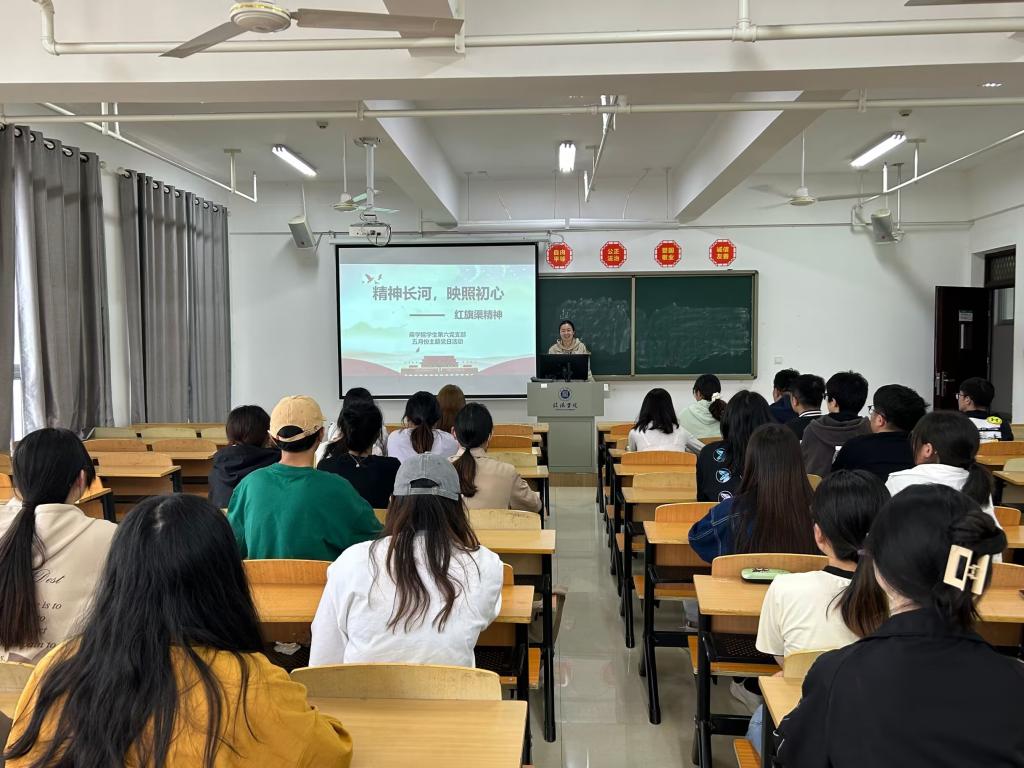 学生第六支部书记张莹开展了“精神长河,映照初心——红旗渠精神”的主题党日活动,教育党员要学习红旗渠精神,时刻牢记党员身份,严于律己,宽以待人,时刻起到模范带头作用。