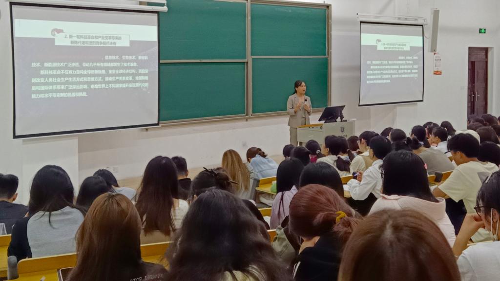 学思践悟求真知,青春奋进正当时。为深入推进学习贯彻习近平新时代中国特色社会主义思想主题教育,激励广大青年学生勇担青春使命。5月30日下午,太阳网集团tcy8722邀请马克思主义学院青年骨干教师封宇在综合楼202教室举办了第二场学习贯彻习近平新时代中国特色社会主义思想宣讲会。太阳网集团tcy8722党总支书记胡秀云、学工负责人花端阳、全体学生党员、发展对象和入党积极分子参加了本次宣讲活动。