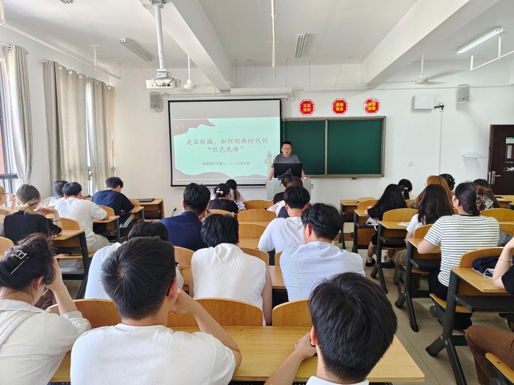 聆听主题党课,勇担时代使命。支部书记胡艳超以《走出校园,如何做新时代的“红色先锋”》为题,为毕业生党员们呈上了一堂内涵深刻的党课。课堂上,胡艳超书记紧密结合乡村振兴等当下时政热点,深入剖析了党员在新时代应肩负的社会责任与担当。他以生动的案例和深入浅出的讲解,激励毕业生党员们在未来的工作与生活中,要时刻以党员标准严格要求自己,积极发挥先锋模范作用,为社会的发展贡献自己的力量。
