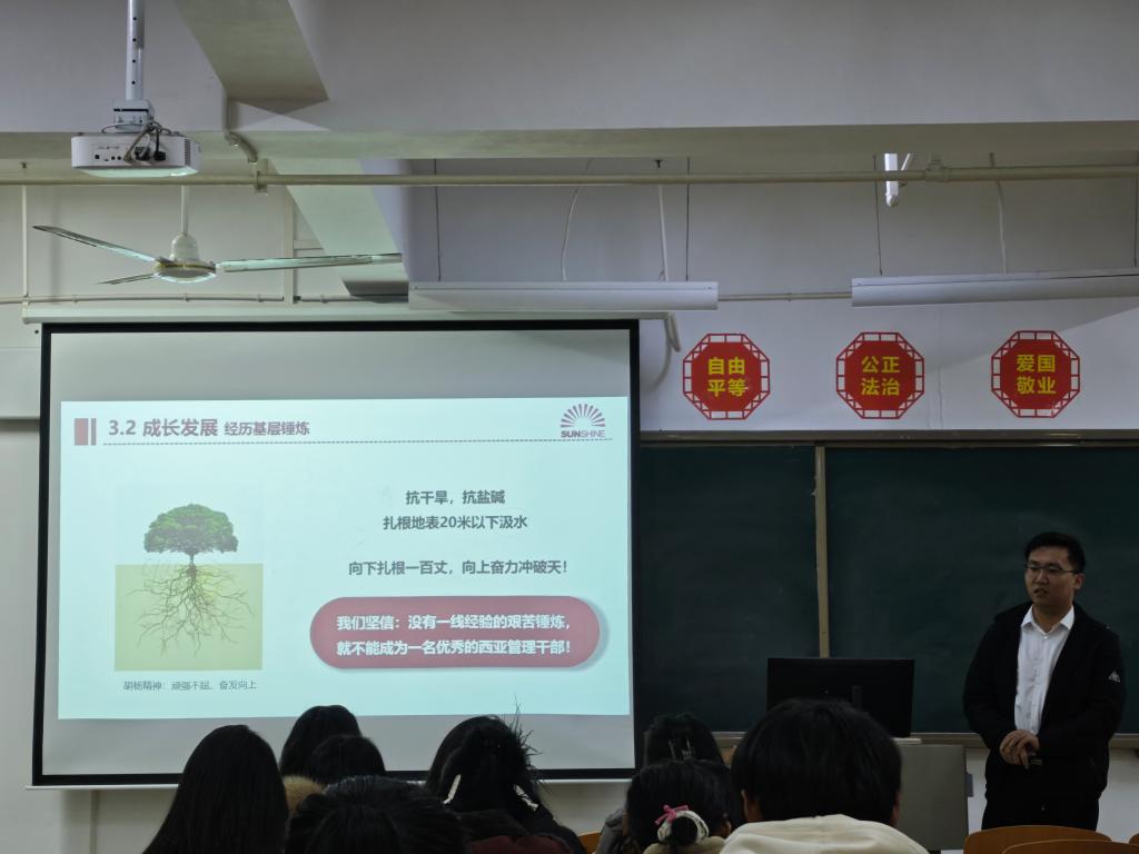 宣讲活动中,西亚和美公司的招聘负责人通过精心制作的宣传片、生动详尽的PPT展示等多种形式,全方位地向参会学生介绍了公司的基本情况、职业发展路径以及当前的人才需求等关键信息。活动现场气氛热烈,学生们纷纷携带个人简历积极与招聘团队进行了深入的交流与探讨,并详细询问了各个岗位的具体要求与发展前景。
