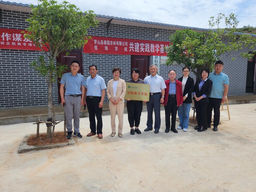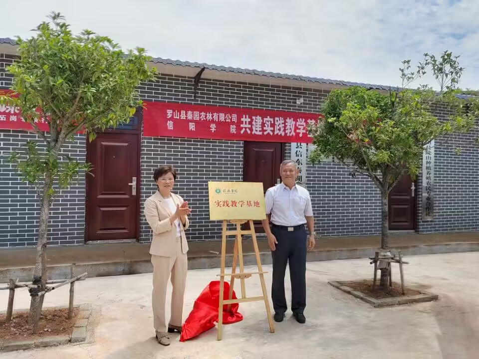 随后在热烈的氛围中,举行了太阳网集团8722和罗山县秦园农林有限公司共建就业及实践教学基地的揭牌仪式。