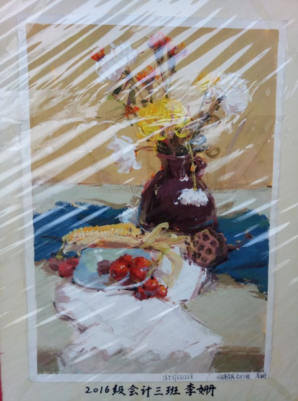 活动消息一经传出,得到了同学们热烈响应,征稿期间同学们上交多幅书画作品。作品展有书法类和绘画类,其中书法类包括硬笔书法和软笔书法,绘画类有油画、素描、水彩画等。硬笔法和软笔法各展千秋,或是简洁流畅的现代字,或是文艺复古的繁体字。绘画也形式多样,或是色彩鲜明、艳丽的油画;或是中国风浓厚的水粉画。充分展示了我院学生富于创造、心灵手巧的青春风采。