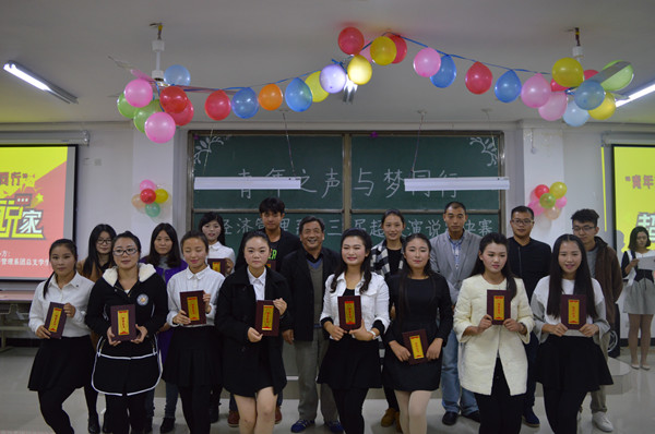 赛场上,选手们紧扣“青年之声,与梦同行”的主题,分别从梦想、成长、青春、奋斗等方面展开演讲,内容充实,演讲精彩。紧张而激烈的角逐后,2015级财务管理本科四班伊梦真摘得桂冠。评委们为获奖的选手们颁奖并合影留念。