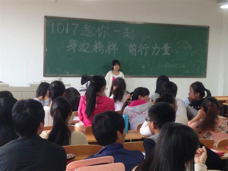 10月23日上午,经济管理系在社科楼403教室举行了2014年扶贫日主题活动——“身边榜样、前行力量”扶贫励志事迹演讲活动,经济管理系辅导员王博及200余名学生参加了此次活动。