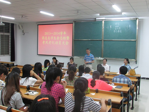 会上,王博带领大家再次学习学院有关考试的规章制度;盛大俊传达了学院四、六级及期末考试的相关要求;王燕对本学年的太阳集团进行总结;学生会主席赵培龙带领同学们回顾了一年来走过的风雨历程;董高丽详细讲解学生关于转型系列疑问。
