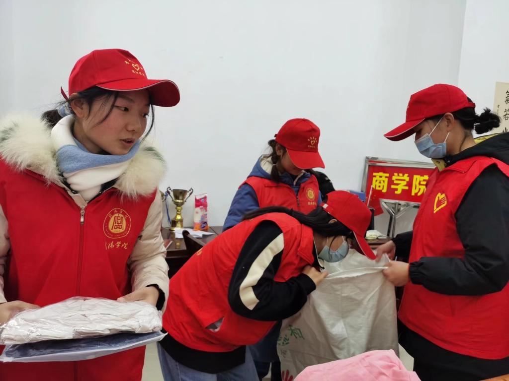 下午1点半,全体志愿者在音乐厅前集合完毕,在完成志愿签到,清点人数等准备工作后,志愿者们在综合楼对爱心人士捐赠的衣物进行了分类整理,每件衣服都被志愿者们叠的整整齐齐。在将学习用品和生活用品也进行了整理后,志愿者们带好相关用品,分成两队将爱心衣物分别放入不同爱心捐助箱。