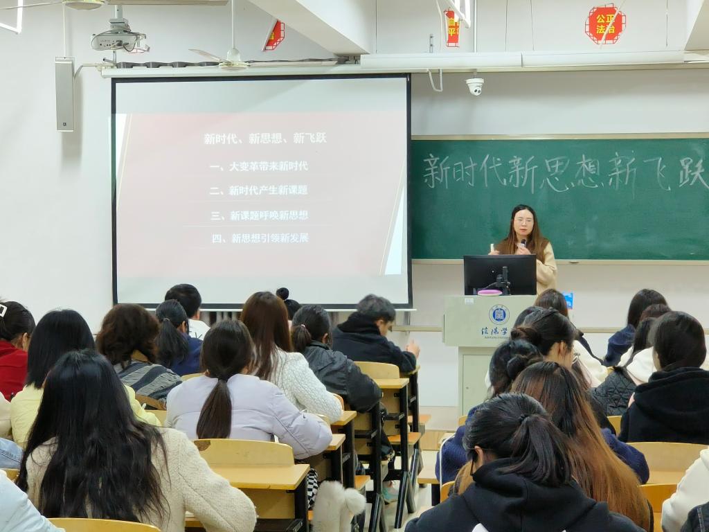 何旗老师简要阐述了大变革带来新时代,带领同学们认识了世界百年未有之大变局加速演进的基本世情、中华民族伟大复兴进入关键时期的基本国情、中国共产党在革命性锻造中坚定走在时代前列的基本党情。随后,通过讲解新时代产生的新课题,新课题呼唤的新思想以及新思想引领的新发展,让同学们认识到了习近平新时代中国特色社会主义思想博大精深,是系统全面、逻辑严密、内涵丰富、内在统一、不断发展的科学理论体系。