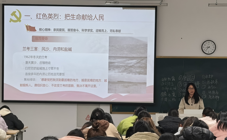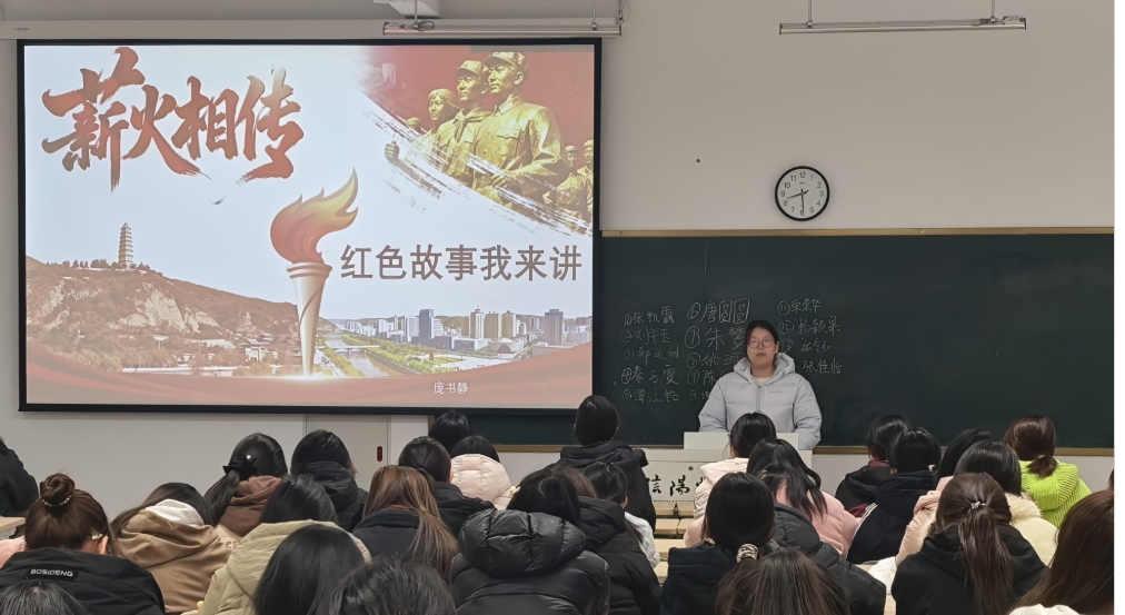 活动中,庞书静同学讲述了革命先辈杨水才的感人事迹。抗日战争时期,杨水才同志满怀家国情怀投身革命洪流,组织群众开展抗日宣传、筹集物资等工作,用满腔热血守护家乡、抗击侵略。新中国成立后,他毅然扎根农村基层,带领乡亲们修水渠、搞生产,被百姓亲切地誉为“红色带头人”。如今,临颍县的杨水才纪念馆与故居遗址成为后人缅怀先烈、传承红色精神的重要教育基地。张钰同学分享了南召县的抗战记忆。在艰苦卓绝的抗战时期,南召百姓自发为前线战士送粮送药、搭建隐蔽联络点,用平凡身躯筑起坚不可摧的防线。徐琳涵同学动情讲述家喻户晓的好干部焦裕禄的光辉事迹。在兰考深受“三害”侵袭时,焦裕禄同志带头走遍全县每个角落查风口、探流沙、摸水情,带领群众栽泡桐、治沙丘、挖沟渠,即便积劳成疾仍强忍病痛坚守岗位,他始终把群众的安危冷暖放在首位,被誉为“县委书记的榜样”。会上,同学们纷纷进行红色故事分享并交流感悟,畅谈对革命精神的理解与传承之志,现场互动热烈。
