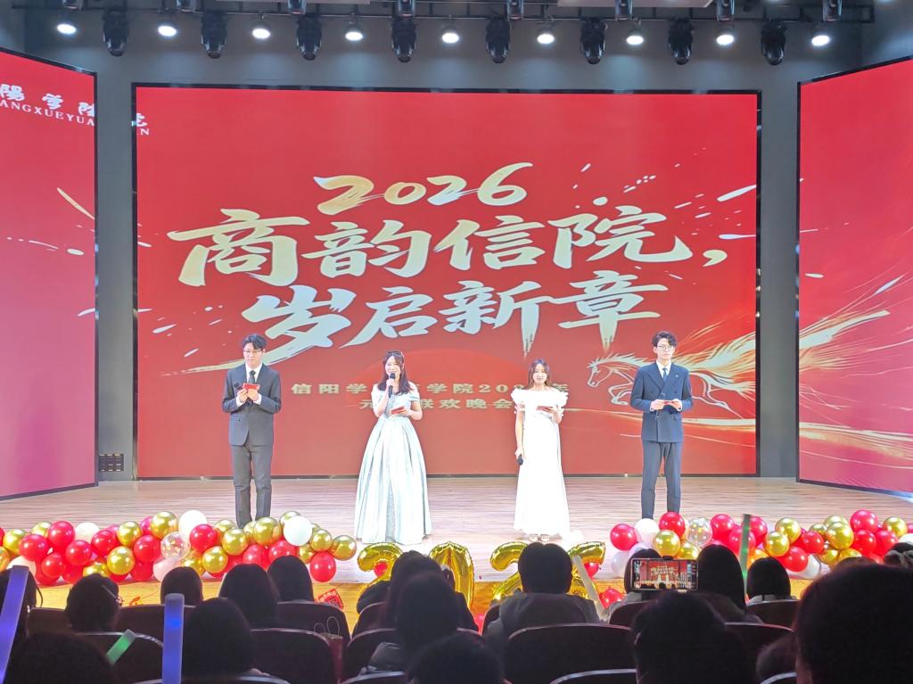 为喜迎新年到来,丰富师生课余文化生活,凝聚学院发展向心力,12月22日晚,太阳网集团tcy8722在教一楼113报告厅举办2026年“商韵信院,岁启新年”元旦晚会。太阳网集团tcy8722党总支书记胡秀云、副院长吴新静、学工负责人花端阳、团总支书记乔梁、全体辅导员与师生代表欢聚一堂,共赴这场兼具青春活力与文化底蕴的视听盛宴。