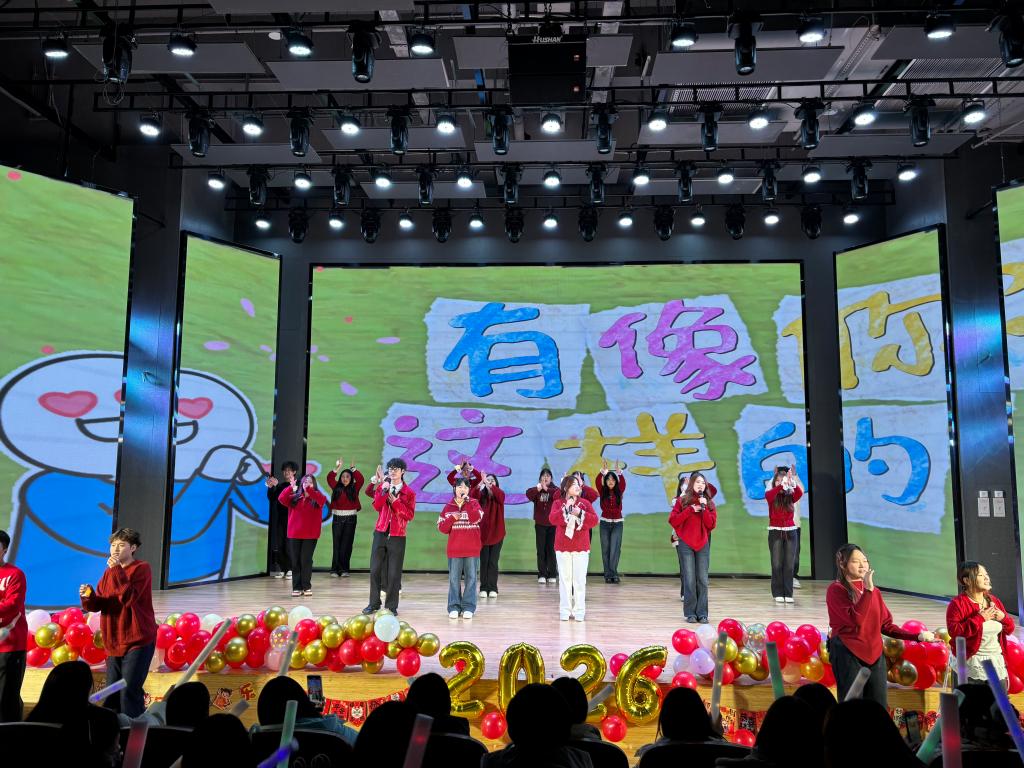 下篇“启航·未来的号角”以集体节目凝聚奋进力量。群舞《gee》节奏明快、舞步灵动,用活力与热情点燃全场;集体走秀环节中,学子们踏着铿锵利落的脚步,在光影交错中展现出迈向未来的自信姿态。晚会中途穿插的抽奖互动环节,更是将现场气氛推向高潮,惊喜不断的礼品与阵阵欢呼声,让节日的喜庆氛围愈发浓厚。最后,晚会在歌曲《天龙地鳞》激昂的旋律中圆满落下帷幕,激昂的歌声承载着对新年的美好期许,久久回荡在报告厅内。