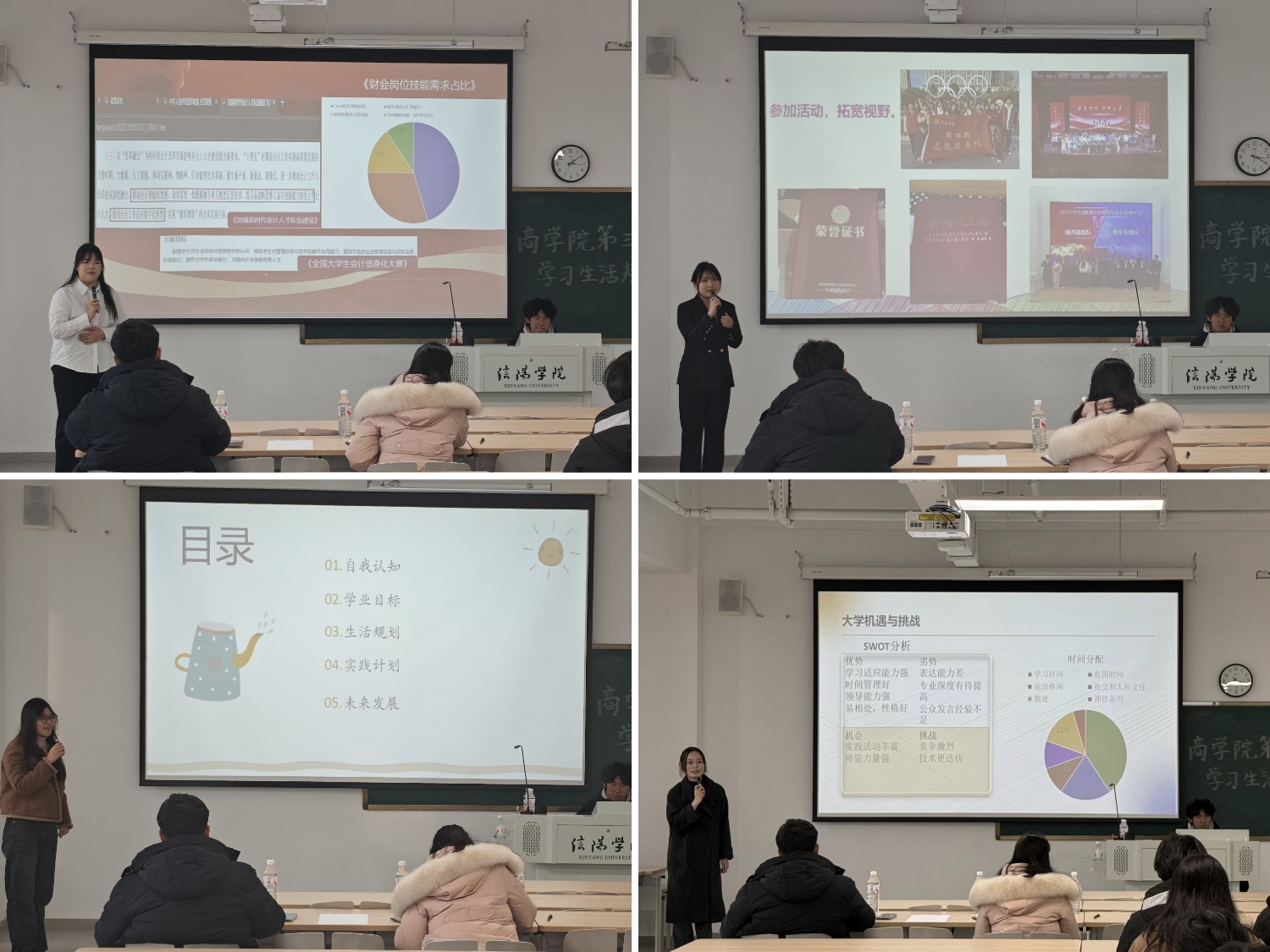 比赛现场,参赛选手通过PPT展示,结合自身专业特色与成长需求,条理清晰地阐述了大学四年的学习生活规划。规划内容涵盖学业目标、专业技能提升、社会实践参与、社团历练及长远职业展望等,充分彰显了他们立足实际、理性谋划的成熟思考。比赛中,选手们纷纷表示,将以学业为核心,合理规划考证进阶路径,同时主动参与学科竞赛、创新创业项目与学生工作等,全方位提升综合素养,让大学时光在精准规划中实现高效利用。