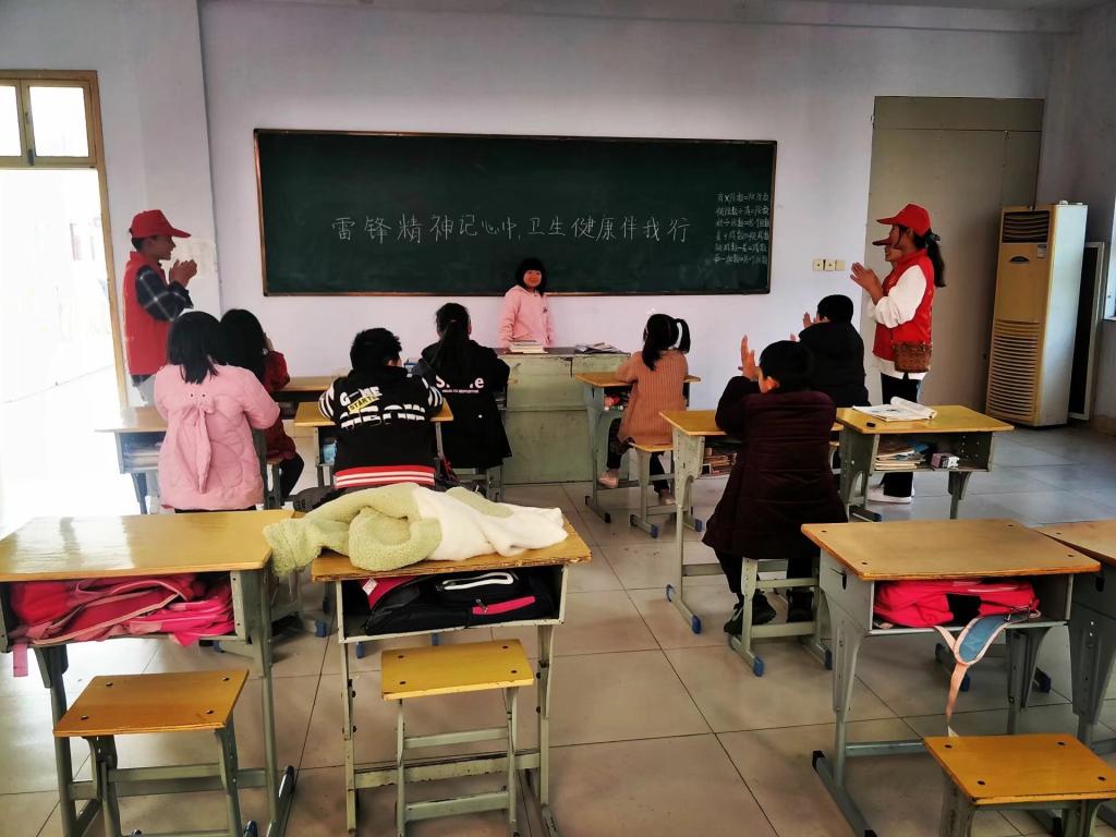 全体志愿者抵达金色童年小学后,按原定计划,分小组进入责任班级开展志愿服务活动。活动中,志愿者向小朋友们讲述了雷锋生平的故事,并带领小朋友们学唱《学习雷锋好榜样》歌曲,以浅显易懂的方式让小朋友们更加了解了雷锋精神。随后,志愿者们结合亲身示范,向小朋友们讲述了安全卫生常识,鼓励小朋友们养成健康卫生的生活和学习习惯。