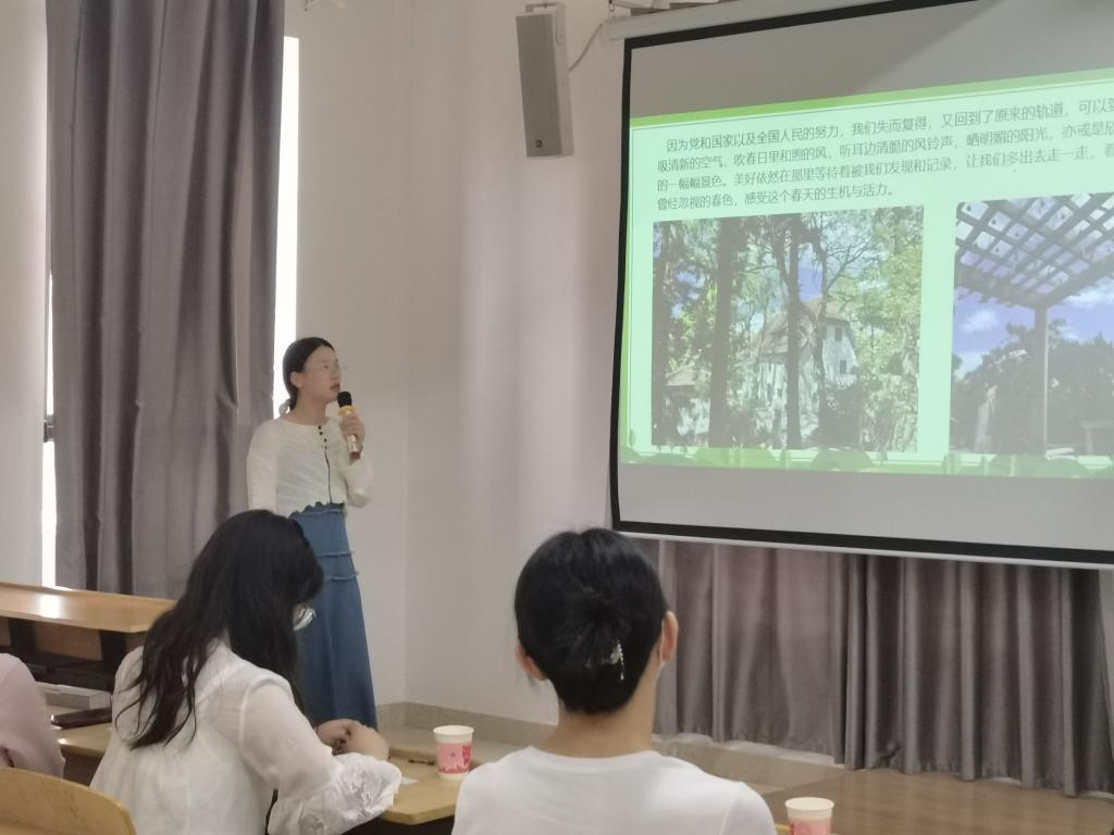 经过初赛的层层选拔共有九名同学入围决赛。比赛现场,同学们以照片和视频的方式分享自己眼中春天的风景和美食。用生动的语言讲述春天的故事,让现场聆听的老师和同学们感受到春天温柔的清风、数不尽的繁花和万物的更迭。