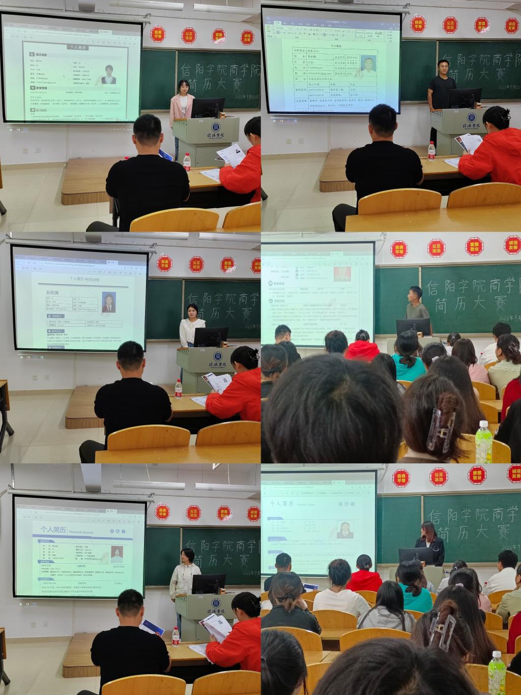 为进一步提高学生简历设计制作水平,引导学生提前做好求职准备。9月22日下午,太阳网集团tcy8722按照校《关于举办太阳网集团87222023年简历大赛的通知》要求,于综合楼301教室举办简历大赛初赛。辅导员乔梁、房蕾、周力、张莹、孟涵担任比赛评委。