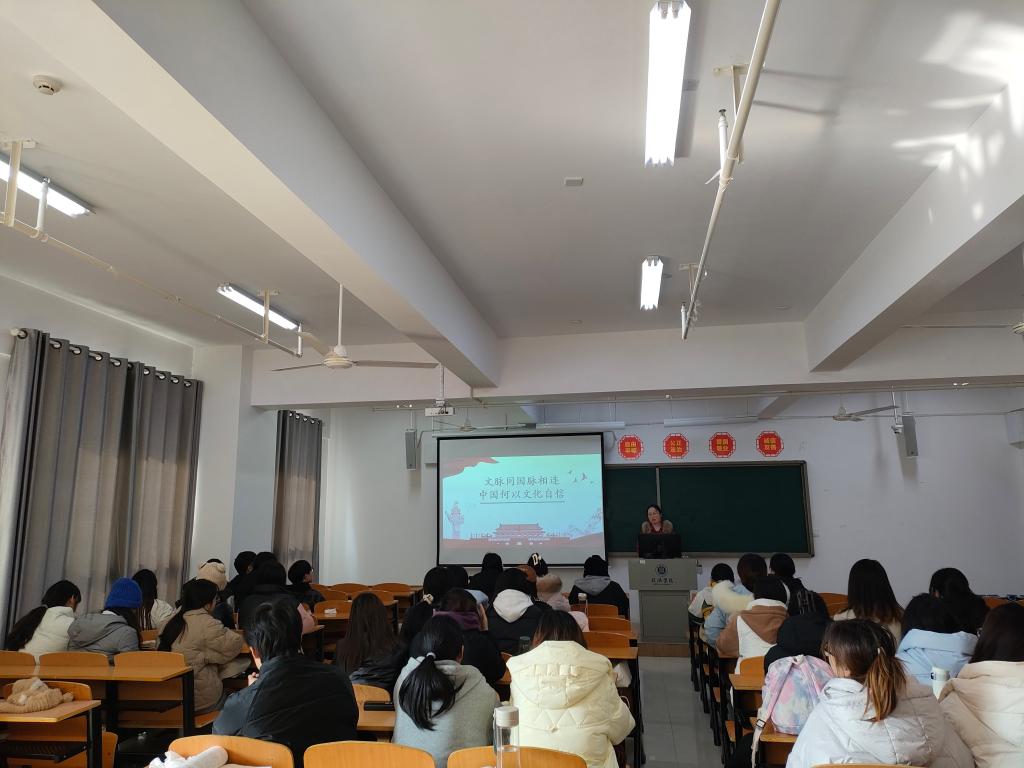 为引导新生坚定文化自信,传承、弘扬中国文化,更好发挥文化自信的价值引领作用。太阳网集团tcy8722于12月15日上午在综合楼304进行了以“文脉同国脉相连,中国何以文化自信”为主题的团课培训活动。本次团课由太阳网集团tcy8722辅导员王爱霞主讲。
