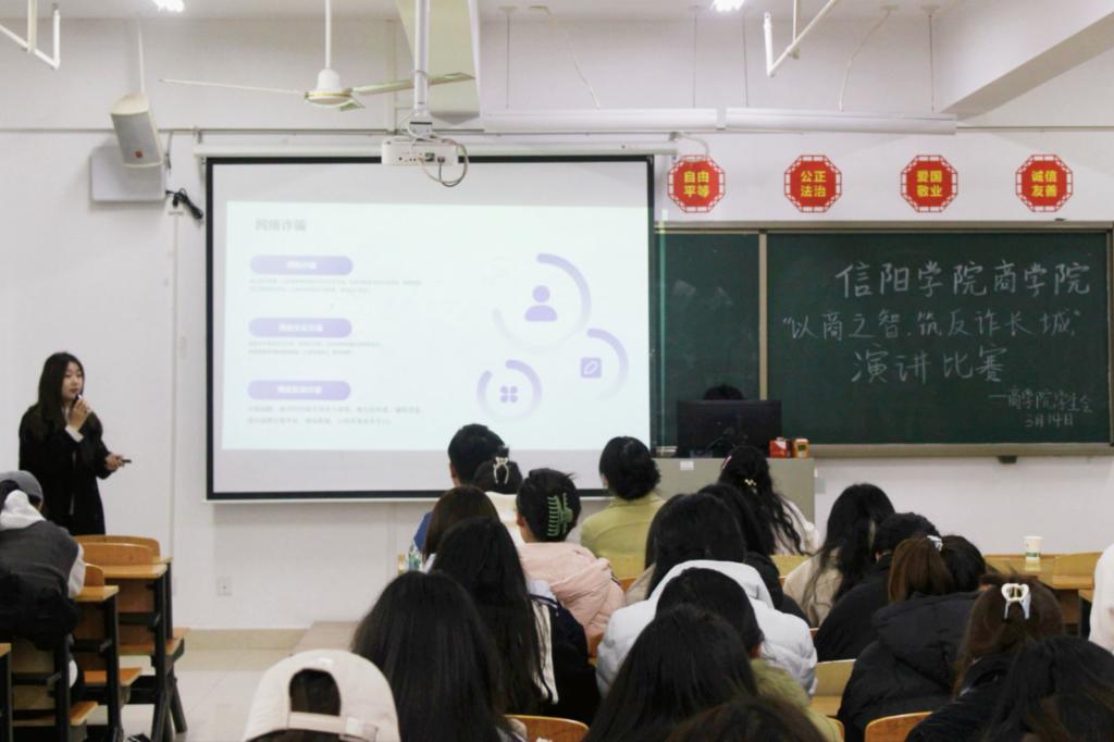 为进一步提高学生反诈骗意识,增强学生识骗防骗能力,太阳网集团tcy8722于3月14日下午在综合楼306教室举办“以商之智,筑反诈长城”主题演讲比赛。太阳网集团tcy8722辅导员乔梁、李欣、姚梦娜老师担任此次比赛评委,太阳网集团tcy8722全体学生积极参与。