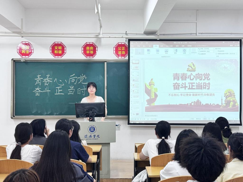 在学习《中国共产主义青年团团旗、团徽、团歌制作使用管理规定》及《中国共产主义青年团章程》时,李欣深入解读团的基本知识,引导学生思考新时代青年如何在日常学习生活中服务同学。她寄语学员立大志、明大德,将个人理想融入民族复兴;勤学习、善创新,在实践磨砺中提升能力;严自律、修品德,以团员标准要求自己,在志愿服务中奉献青春。