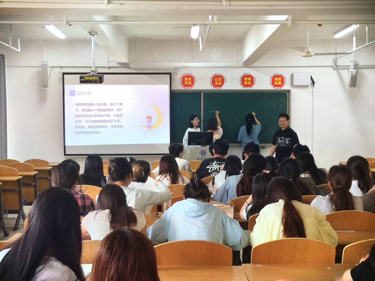 5月19日,周力老师带领22会计本2班的同学们在综合楼406教室举办以“解码压力密码,激活心力量”为主题的心理团辅活动。活动以别出心裁的“雨中人”绘画测试开场,同学们在绘画过程中,用画笔描绘出自己对压力的独特感知。紧接着的“记忆王者”游戏将活动推向了一个小高潮,每位同学准备一张画有30个格子的白纸,在规定时间内,用图画形式记录依次报出的30个物品名字。这一游戏不仅考验了同学们的记忆力,更在紧张刺激的问答环节中,锻炼了大家在压力下的反应能力和心理调适能力。