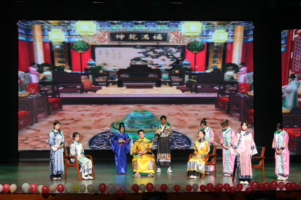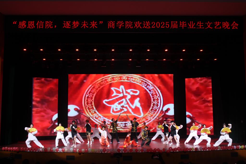 晚会在舞蹈《我的未来式》中活力开场,瞬间点燃现场气氛;歌曲《世界赠予我的》以温暖的旋律传递对生活的热爱与感恩;朗诵《穿越时空的对话》用饱含深情的声音诉说历史与现实的交融,引领感悟岁月沉淀与传承力量;歌曲《若是月亮还没来》旋律悠扬,倾诉青春的懵懂与期待;舞蹈《新青年》展现新时代青年的责任担当;情景剧《甄嬛传之那些“院内”行为规范》巧妙融合热门影视与校园生活,幽默表演引发阵阵欢笑;Rap《爱你3000》淋漓尽致展现青春活力;武术表演一招一式刚劲有力,尽显中华武术魅力;歌曲《有我》大气磅礴,唱出青年学子的壮志豪情;歌曲《爱存在》娓娓道来校园点滴温暖与爱意;小品《一切都是最好的安排》通过生动表演传递乐观积极的生活态度;舞蹈《等你的回答》活力四射,老师们以灿烂笑容传递对毕业生的祝福;歌曲《后来》勾起了大家对往昔时光的回忆;朗诵《青春》展现出青春的活力与美好。最后,晚会在《凤凰花开的路口》老师们的深情歌声中圆满落幕。