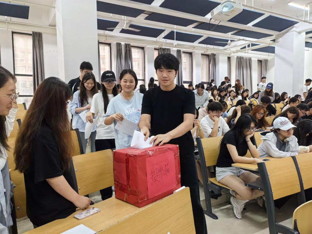 经现场举手表决,袁娅晴当选监票人,李怡诺、秦佩璇担任计票人。在各班级代表的郑重投票下,经现场开箱验票、分类统计与结果复核,乔梁老师宣布房星辰等35位同学凭借良好的群众基础与综合素养当选新一届学生代表。