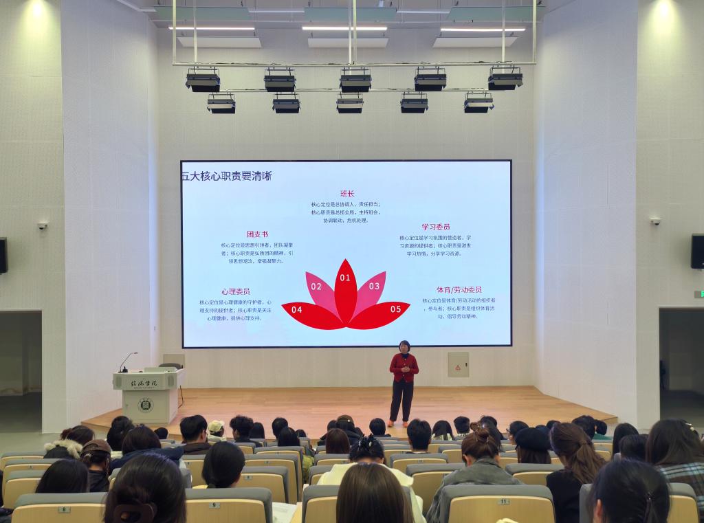 会上,吴新静副院长还进一步梳理了班长、学习委员等五大核心班委的岗位定位与工作重点,帮助学生干部厘清职责边界、明确工作方向;同时提出示范带动、畅通沟通、组织活动、助力进步四类工作法,配套给出组建学习小组、强化学业督促、建立学困生帮扶机制等具体举措,为学生干部开展学风建设工作提供了清晰可落地的行动指南。